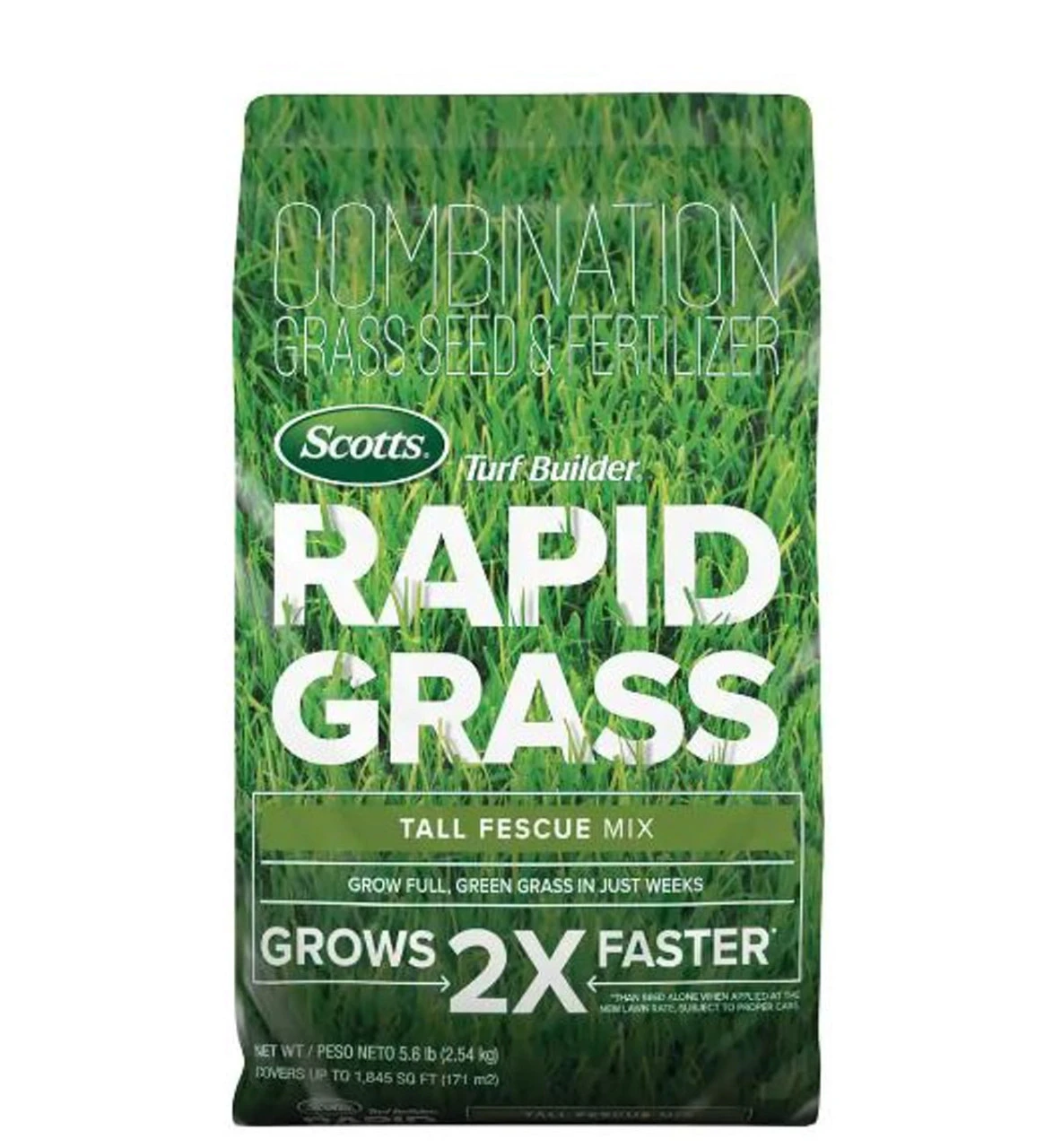 Get outside and enjoy your lawn with Scotts Turf Builder Rapid Grass Tall Fescue Mix. With our unique, proprietary mix of seed and fertilizer in one effective formula, your lawn benefits from extended feeding, resulting in full green grass! Compared to seed alone, your lawn will grow 2 times faster (when applied at the new lawn rate, subject to proper care). Use on either new lawns or overseeding existing grass. Scotts Turf Builder Rapid Grass Tall Fescue Mix grows green, lush grass, in just weeks! Grass seed germinates best when temperatures are between 60ÂF and 80ÂF and without danger of frost, usually in the Fall and Spring. To apply, rake the top layer of soil before applying with a Scotts spreader. For best results, water twice daily for at least 3 weeks. One 5.6 lb. bag covers 1,845 sq. ft. when overseeding an existing lawn, and 615 sq. ft. when growing a new lawn. Do not use weed control products until your lawn has been established (mowed at least 4 times). If you already applied weed control, please see those package directions on when to plant grass seed. Finally, be sure to apply Scotts Lawn Food products every 8 weeks throughout the season to help maintain your thick, green lawn.